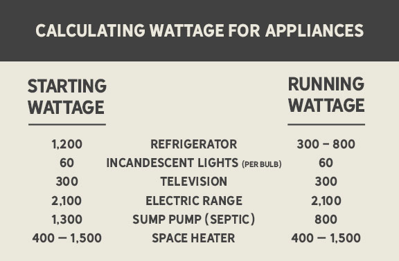 Portable generators can emit from 5,000 - 7,000 watts of power. The size you’ll need is determined by the size of your home and appliances you consider most important to keep running (for example, lights, fan, portable A/C, and refrigerator). You’ll need to calculate the required running or rated wattage for the appliances you want to power, to ensure you have sufficient wattage. All appliances have a start-up or surge wattage to include, which is the wattage required for the first two to three seconds to start an appliance in your home.