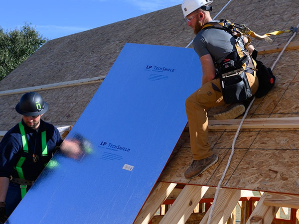 - Wall OSB: The wall type isn’t just great for sheathing home construction. Its built-in, weather-resistant outer layer can eliminate the need for house wrap in regions where wrap is not required by code. It won’t blow off or tear, and while it’s water and air resistant, it still allows for moisture to escape.