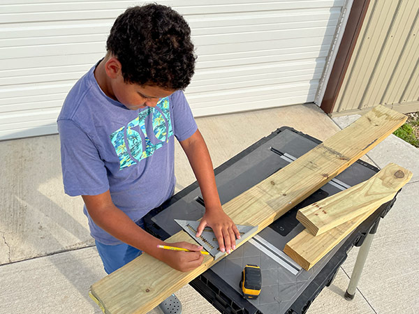 - Measurement Manager: Kids can help measure for you using a tape measure or hold one end, or a level. An extra set of hands is extremely useful and centering the little bubble is a great “kid job.” Double-check their numbers if they measure for you, of course. Kids can measure scraps on their own too.