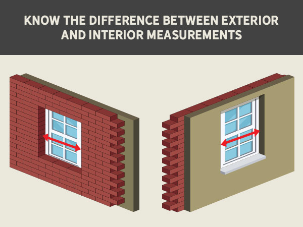 Here's what to do. For rectangle openings, you'll measure horizontally across the top, middle, and bottom of the window from one finished edge of your home's exterior (the brick, stucco, or siding) to the other. You'll do the same vertically across the center and to the left and right.