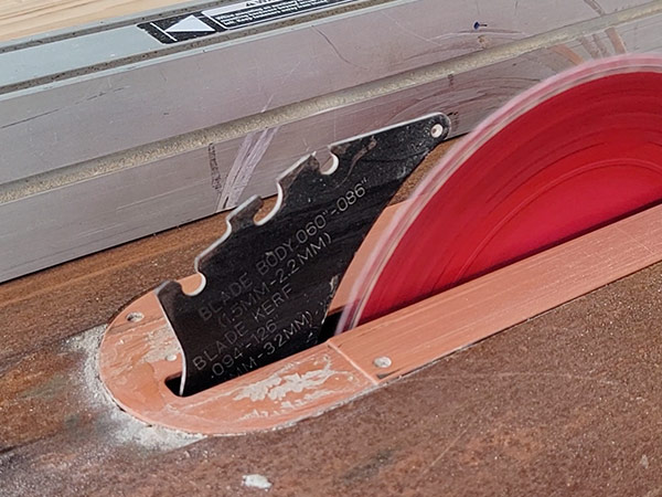 - Riving Knife- The riving knife fits just behind the blade and prevents wood from touching the rear of the blade, which is what causes kickback.